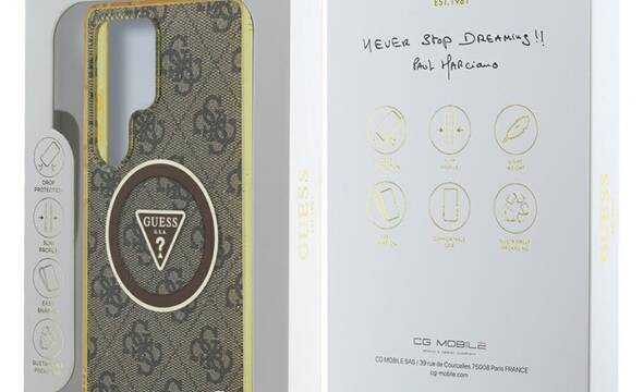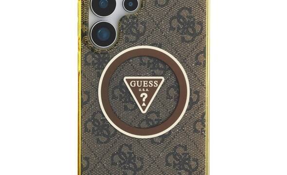 Guess 4G Glitter Triangle Buttons MagSafe - Etui do Samsung Galaxy S25 Ultra (bršzowy)