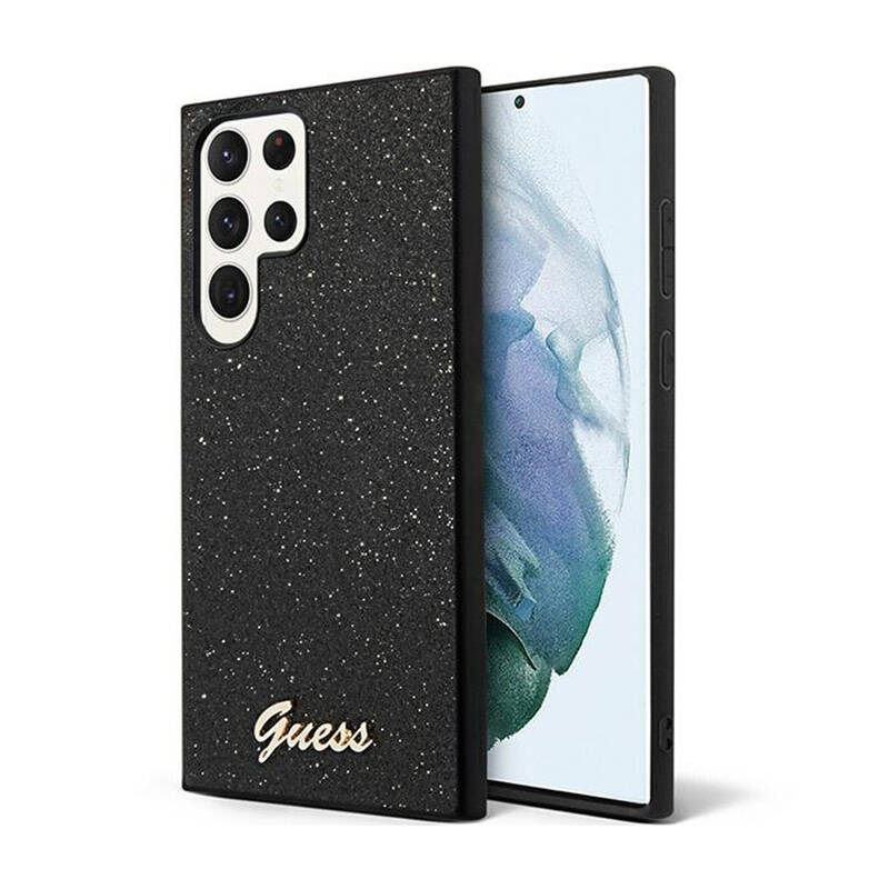 Guess Glitter Flakes Metal Logo Case - Etui Samsung Galaxy S24 Ultra (czarny)