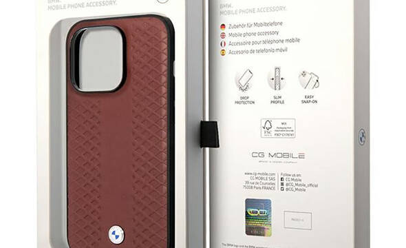 BMW Leather Diamond Pattern - Etui iPhone 14 Pro (burgundowy)