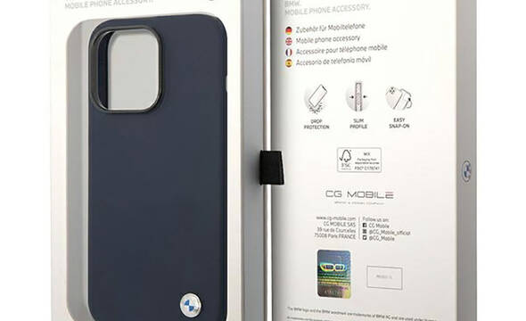 BMW Liquid Silicone Case Metal Logo MagSafe - Etui iPhone 14 Pro (granatowy)