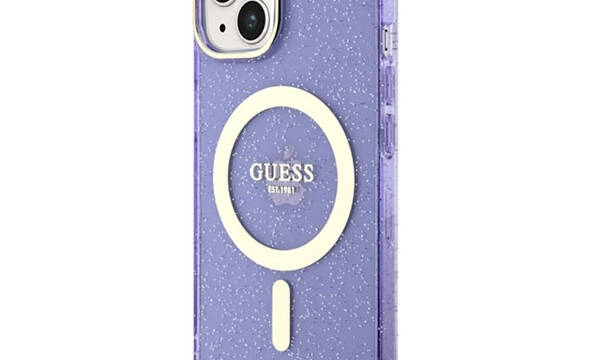 Guess Glitter Gold MagSafe - Etui iPhone 14 Plus (Purpurowy)