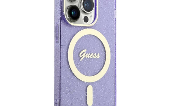 Guess Glitter Gold MagSafe - Etui iPhone 14 Pro (Purpurowy)