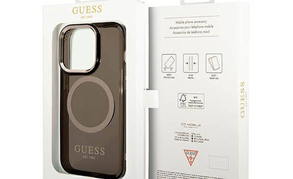 Guess Gold Outline Translucent MagSafe - Etui iPhone 14 Pro Max (czarny)