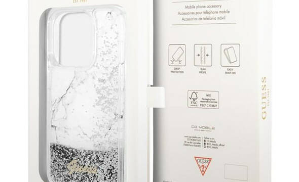 Guess Liquid Glitter Marble - Etui iPhone 14 Pro (Bia