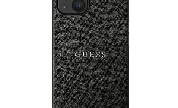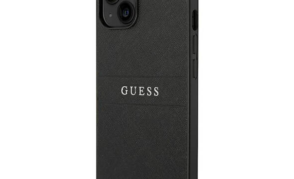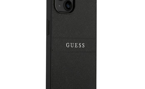 Guess Saffiano Metal Logo Stripes - Etui iPhone 14 Plus (czarny)