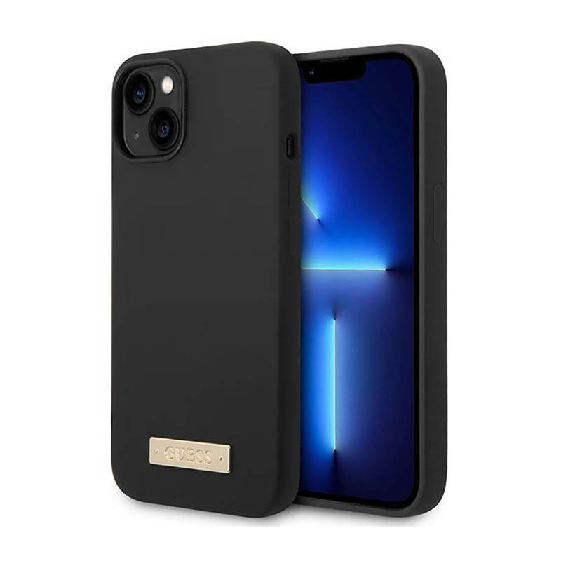 Guess Silicone Logo Plate MagSafe - Etui iPhone 14 Plus (czarny)